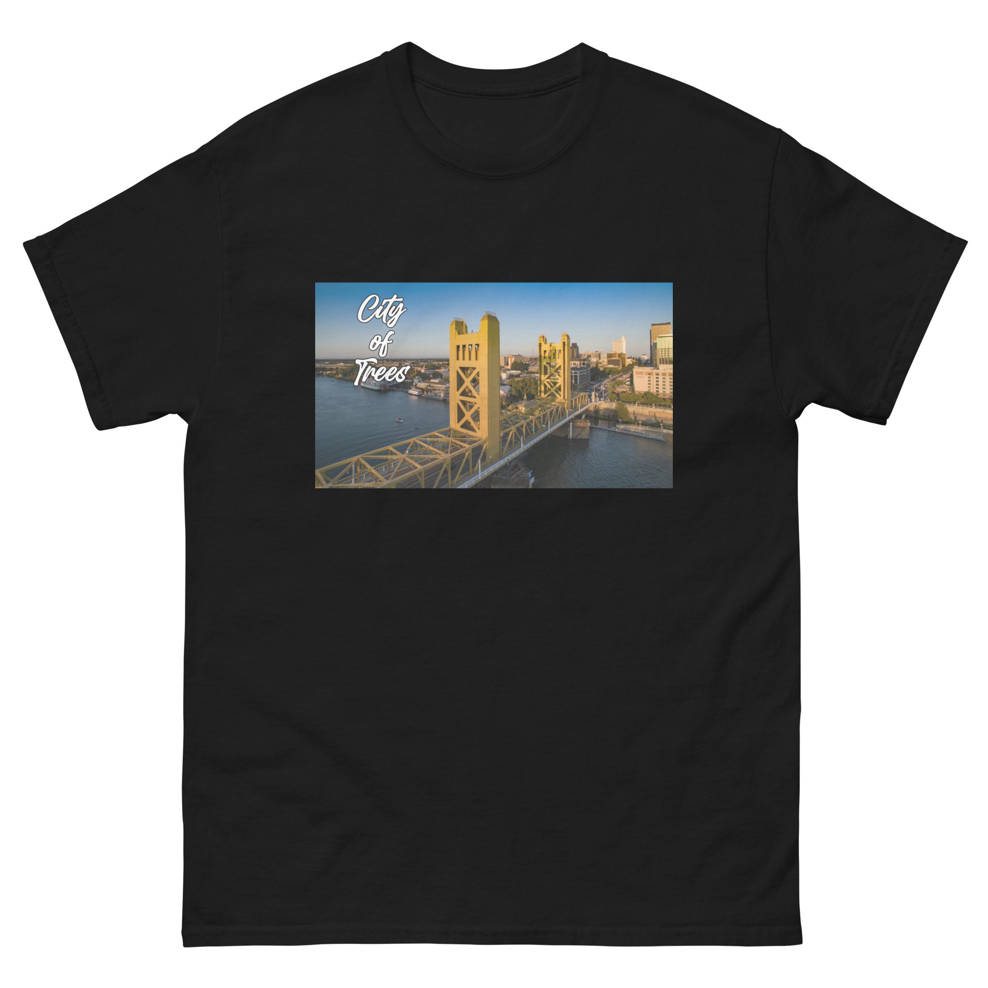 Crafted from 100% cotton, this unisex classic tee offers a structured fit that holds its shape while keeping you comfortable. Featuring a bold design of the iconic Sacramento Bridge with "City of Trees" in elegant cursive, this shirt is perfect for everyday wear or layering with your favorite streetwear.